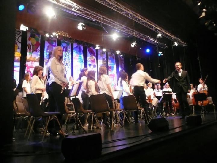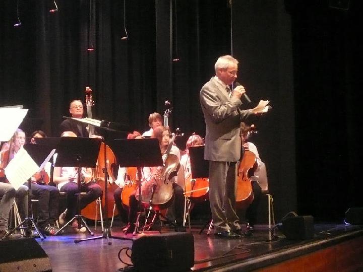 Auch der zweite Abend mit Orchester, Chören und Big Band fand eine volle Stadthalle, diesmal mit dem neugewählten Bürgermeister Klaus Heininger als beeindrucktem Zuhörer. Annette Bolz in Aktion |