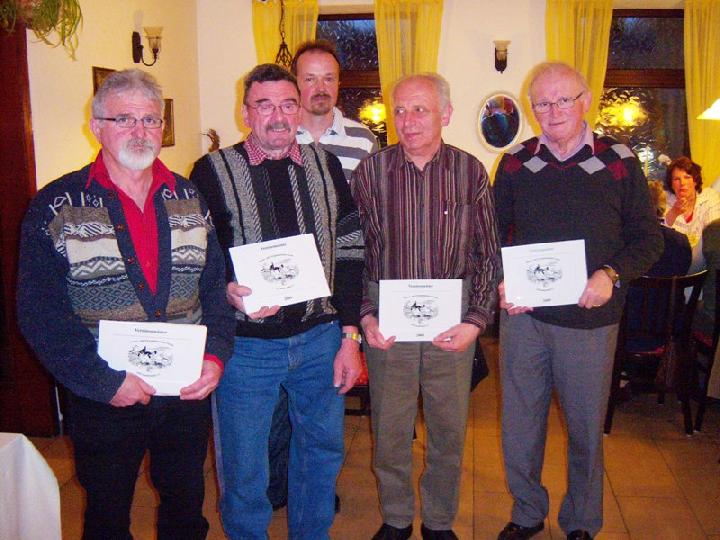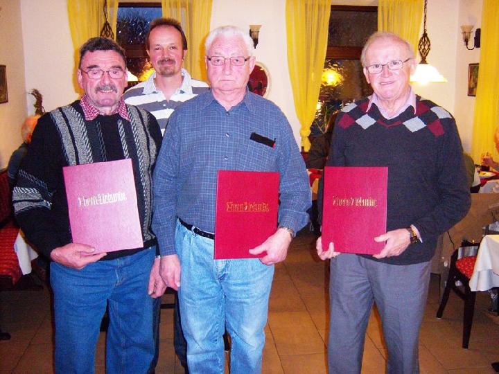 Die VDT- Nadel in Gold wurde an Mihaly Bencik für jahrelange aktive Mitarbeit vergeben, ebenso trug der Verein den Mitgliedern Manfred Witzig, Günther Traub und Ewald Holl die Ehrenmitgliedschaft an, wobei der Vorstand auf ein persönliches Laudatio eines jeden Geehrten einging, so konnte man sehen, das jahrzehntelange Mitarbeit, Aktivität und Engagement zum Verein und zu seinem Hobby jede noch so große Hürde nehmen kann, man blieb seinem Hobby im Verein immer treu, dafür bedankt sich der Verein.