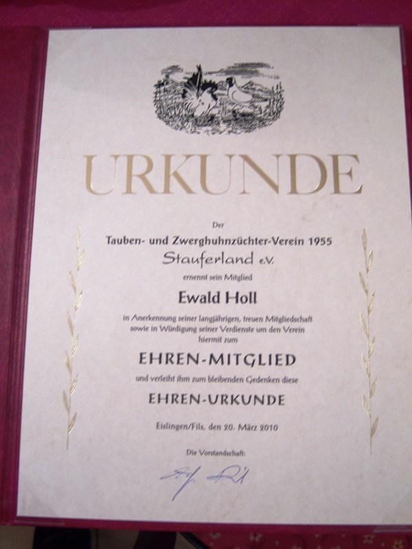 Neuwahlen sind Regularien, welche demokratisch abgehandelt werden und so wurden in ihren Ämtern auf weitere zwei Jahre bestätigt bzw. neu gewählt der Vorstand Stefan Raindl, als Vereinkassier Stefan Jahn, die Zuchtwarte , für Tauben Georg Maichl, für Geflügel und Zwerghühner Stefan Jahn, die Beisitzer Mihaly Bencik, Emil Kielkopf, Wolfgang Fischer, Hans Mayer, Josef Kolb und als Kassenprüfer Hans- Peter Knodel. Keine Anträge zur Jahreshauptversammlung zeigen von zufriedenen Mitgliedern und so konnte der Vorstand auf das Jahresprogramm eingehen, wobei der Besuch und das vorläufige Programm für die Zuchtfreunde aus Eislingens Partnerstadt Villany zu Pfingsten im Raum standen, das Sommertreffen bei den Zuchtfreunden in in Lorch, welches eingehend erläutert und diskutiert wurde. Mit Wortmeldungen und Diskussionsbeiträgen über die aktuelle Version der Vereinsmeisterrichtlininen, kommenden Planungen für Veranstaltungen, die 55. Staufer Rassegeflügelschau am 08/09. Januar 2011 konnte der Vorstand eine positive Versammlung mit dem Wunsch für ein erfolgreiches Vereins-, Zucht- und Ausstellungsjahr schließen. Wer sich für den Tauben- und Zwerghuhnzüchterverein interessiert, auf der Homepage innerhalb des Verbandes der Zwerghuhnzüchter unter www.vzv.de/Mitglieder/Stauferland können jederzeit Informationen abgerufen werden.