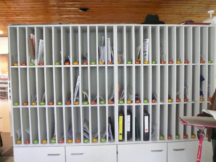 Ostereierpostfächer am EKG Sekretärinnen überraschen EI-lends und EI-frig das Kollegium 31.3.2010 - Peter Ritz
