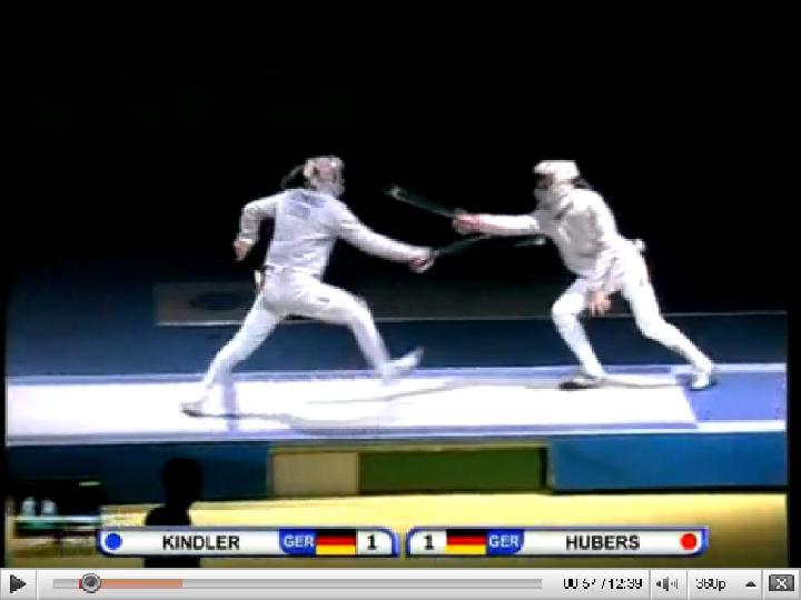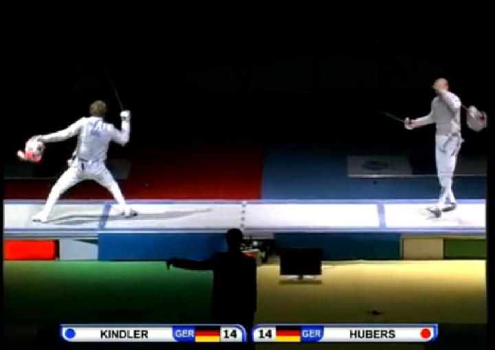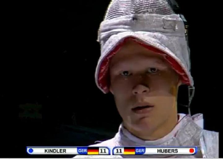 In Baku, Hauptstadt von Aserbaidschan, erkämpfte sich der Säbelspezialist von der TSG-Eislingen die erste WM-Medaille in seiner noch sehr jungen Laufbahn. In dem sehr spannenden, rein deutschen Finale verlor er nach einem 4:9 Rückstand am Schluss noch deutlich knapp mit 14:15 gegen Richard Hübers aus Dormagen. Im Finalgefecht Maximilian Kindler |