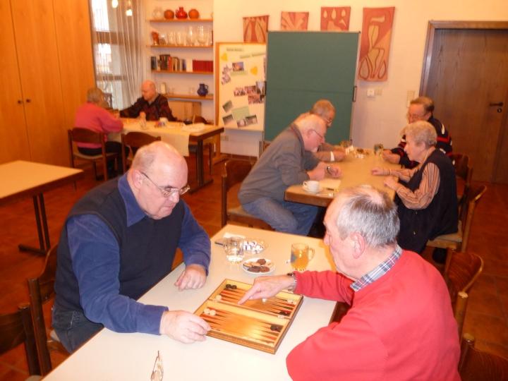 Auf ehrenamtlicher Basis hat sich hier sogar ein Fahrdienst bewährt, der u.a. auch Bewohner/innen aus dem nahe gelegenen Altenzentrum St. Elisabeth abholt. So kann der Spieletreff eine gute Unterbrechung des Alltages sein, bei dem auch das gemeinsame Gespräch nicht zu kurz kommt.
