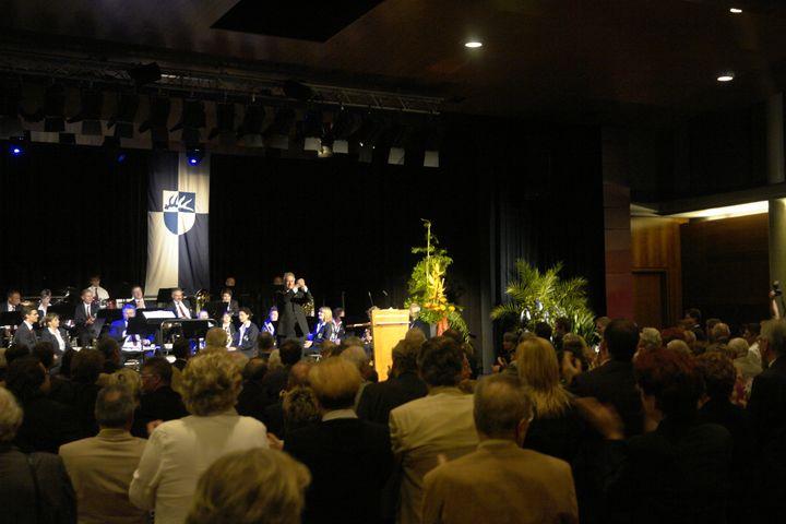 Standig Ovations zu Schluß, so endete nach gut 3 Stunden der doch überwiegend kurzweilige Verabschiedungsmarathon in der Stadthalle Eislingen. In seinen Abschlußworten ging Bürgermeister Frank auf seine 32 Dienstjahre ein. Ein Bürgermeister hat zwei Frauen, die Ehefrau und das Amtsbüro, welches er jetzt aufgibt.