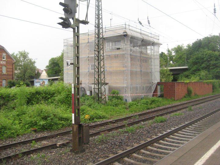 Irgendwie hatten wir uns die Anküdnigung der Deutschen Bahn anders vorgestellt. Wir dachten mehr an den Bahnsteig, die Unterführungen sowie an den ungünstigen Standort des Fahrkartenautomaten. Eingerüstet.. das Eislinger Stellwerk |