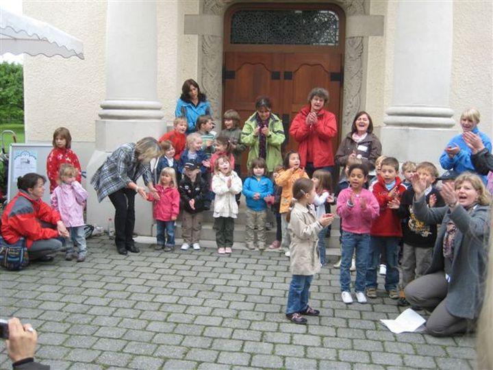 Mit ebensolcher Begeisterung boten die Kindergartenkinder zusammen mit den Erzieherinnen eine musikalische Aufführung dar: „In uns steckt Energie drin“. Das Publikum ließ sich vom Schwung der Kinder und ihrer Lieder mitreißen und dankte mit herzlichem Applaus.