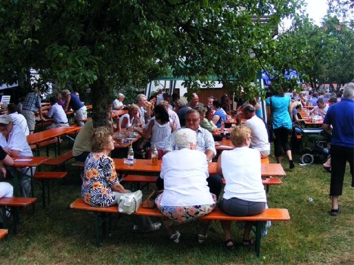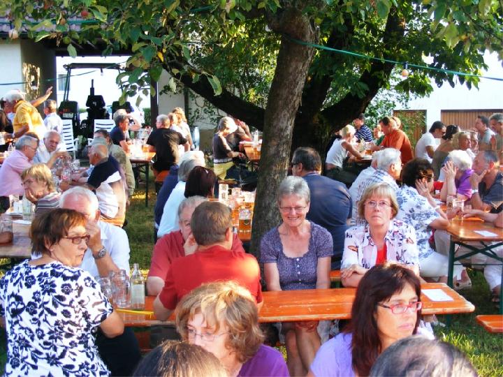 Gute Stimmung beim FC-Hock in Maiers Garten