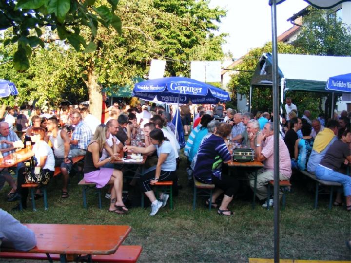 (tr) Alle Jahre wieder veranstaltet der 1. Fußballclub Eislingen seinen traditonellen FC-Hock in Maiers Garten. Der FC übernahm Anfang der achtziger Jahre den Termin vom Eislinger Trachtenverein und führt seither die Festtradition im urigen Eislinger Garten an der Ecke Silcher-/Friedhofstraße fort.