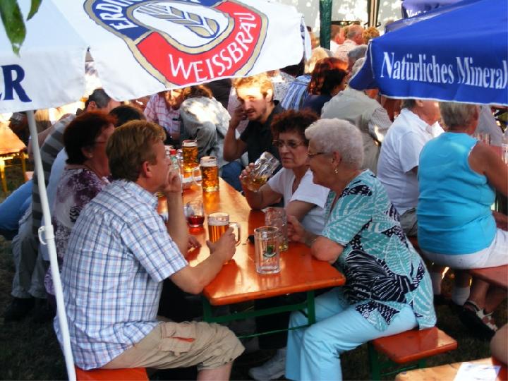 Am Sonntag war das Wetter den Blau-Weißen wohlgesonnen und einige Eislinger ließen sich den Weißwurst-Frühschoppen nicht entgehen. Am Abend war der Festplatz dann sehr gut besucht und „Star-Express“ heizte den Hockbesuchern kräftig ein. In den späten Abendstunden tauchtedann auch immer wieder die Frage nach dem nächsten Hock in Maiers Garten auf.