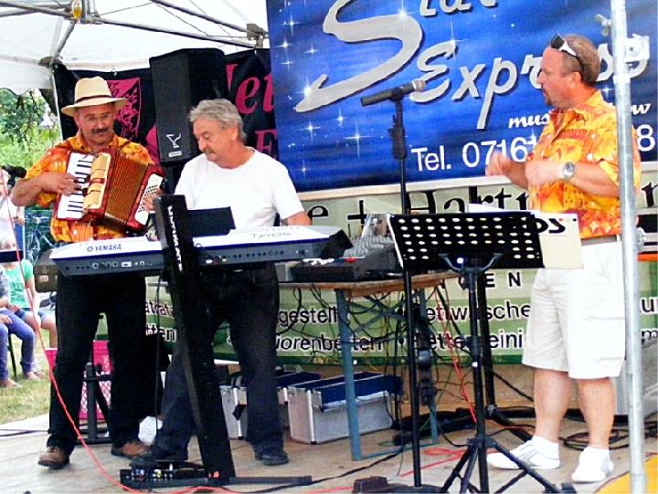 Zwar machte Petrus am Samstag dem Verein mit seinen rührigen Helfern einen Strich durch die Rechnung, denn unmittelbar nach Festbeginn setzte der Regen ein und es kühlte merklich ab. Doch in den Abendstunden war es von oben wieder trocken und es fanden sich doch noch einige Eislinger auf dem Festplatz zum geselligen Beisammensein ein. Für gute Stimmung sorgte an beiden Tagen „Star-Express“ mit einem ausgewogenen Musikrepotiore für Jung und Alt.