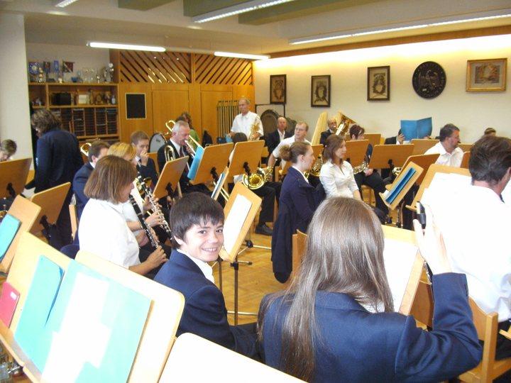 In zahlreichen Zusatzproben wurde an beiden Stücken geschliffen und gefeilt – um Tempo, Rhythmik und Dynamik vereint mit der Schulung der Tonkultur und des Zusammenspiels nach den Vorstellungen des Dirigenten unter einen Hut zu bringen.
