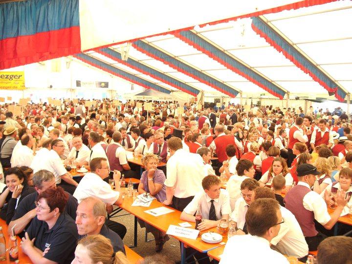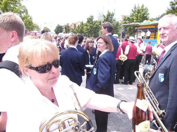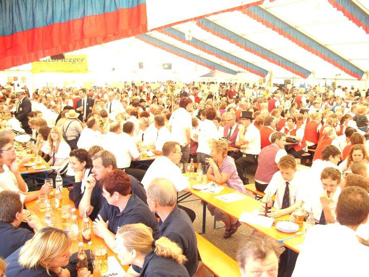 Am Nachmittag beteiligte sich die Stadtkapelle am Festzug in Burladingen mit über 50 teilnehmenden Blaskapellen und anschließendem Massenchor – danach hieß es warten auf das Ergebnis des Wertungsspiels. Die Wartezeit wurde durch hervorragende Blaskapellen verkürzt die die Stimmung im Zelt kräftig anheizten.
