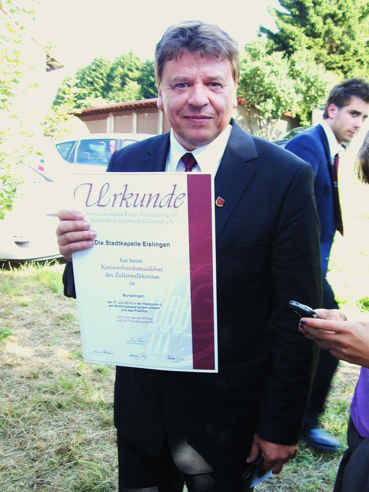Nach mehr als 12 Jahren Auszeit nahm die Stadtkapelle Eislingen am letzten Wochenende wieder an einem Wertungsspielen in Burladingen (Zollernalbkreis) teil. Mit dem Pflichtstück „Petöfi“ – einer ungarische Ouvertüre von Josef Pécsi – und dem Selbstwahlstück „Pilatus: Mountain of Dragon“ von Steven Reineke erreichte die Kapelle in der Oberstufe (4) das Prädikat: