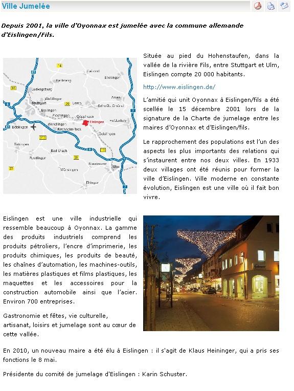 Wer bei eislingen-online den Link zur französichen Partnerstadt anklickt, wird feststellen, daß Oyonnax das Erscheinungsbild im Internet überarbeitet hat.