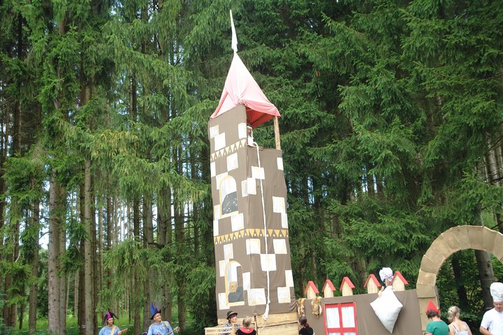 Hänsel und Gretel, Dornröschen, Frau Holle, das tapfere Schneiderlein und viele andere Figuren aus den Sammlungen der Gebrüder Grimm haben im Waldschloß im Eislinger Täle ein neues Quartier gefunden. Leider wollten fiese Manager das schöne Treiben am Ferienbeginn sofort beenden und mit Leistungsdruck weiter für Schulstress und Lernen bei den 70 Kindern der Waldwunderwoche sorgen. Fiese Manager wollen das Märchenschloß räumen |