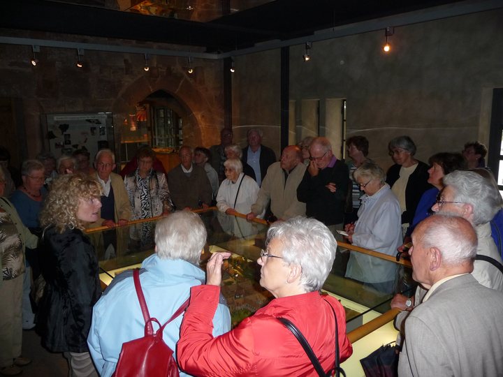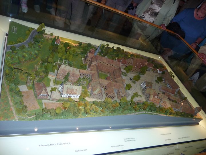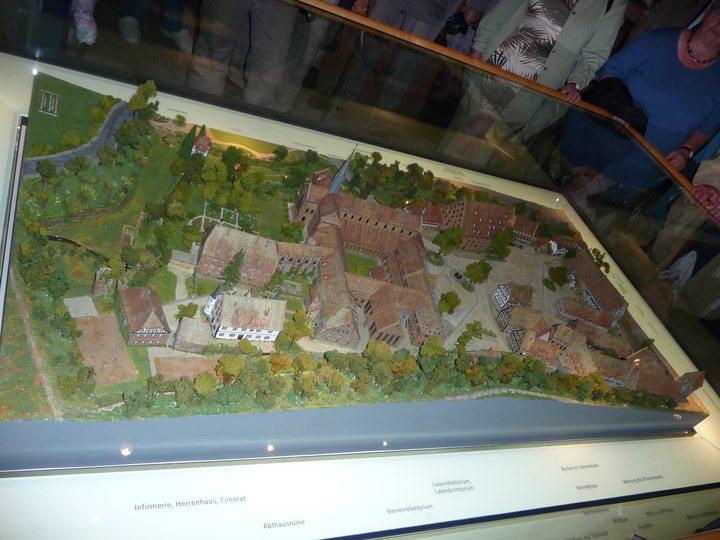 An einem Modell, das die weitläufige Klosteranlage zeigte, gab die Klosterführerin sach-kundige Erläuterungen zur wechselvollen Geschichte des Klosters: Gegründet 1138 von den Zisterziensern, einem Ableger der Benediktiner, lebten im Kloster zeitweise etwa 100 Mönche, dazu ca. 300 Laienbrüder. Die Laienmönche, die den Klosterbetrieb am Laufen hielten, wurden aufgrund ihrer grauen Kutten Graubrüder genannt, während man die anderen wegen ihrer hellen Umhänge als Weißmönche bezeichnete.