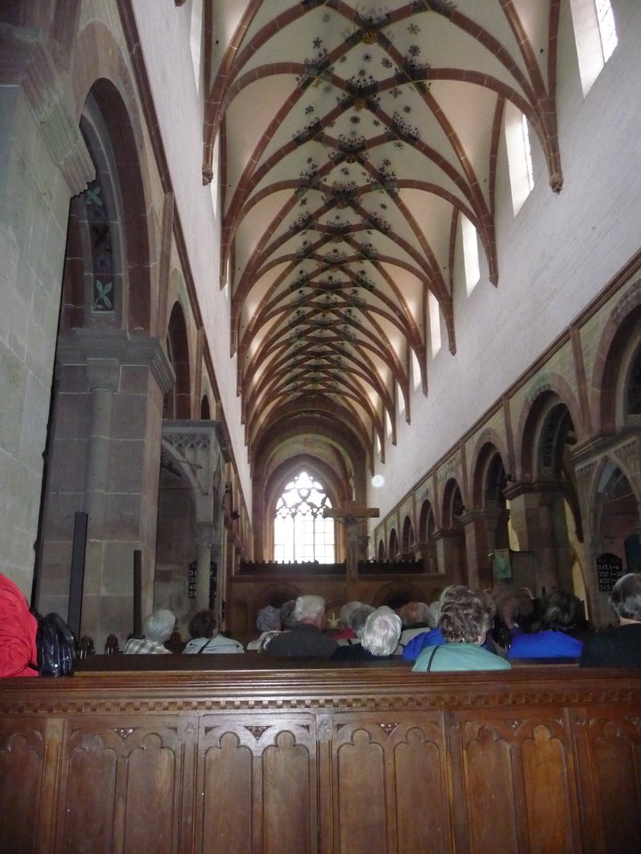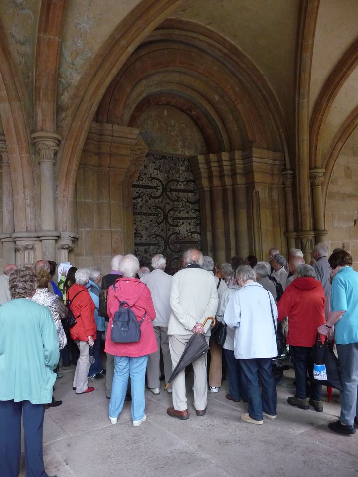 Der Hochaltar mit den Reliefbildern stammt noch aus der Ursprungszeit. An der Wand kann man heute noch dass Stifterbild betrachten. Zum Schluss wies unsere Führerin auf einen kleinen, seitlichen Ausgang zwischen Chorgestühl und Altarraum hin: Die schmale Todespforte, die einzige Tür die von Mönchen und Laienbrüdern gleichermaßen benutzt wurde und die auf den damaligen Friedhof führte, der aber heute nicht mehr vorhanden ist.