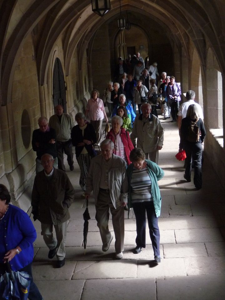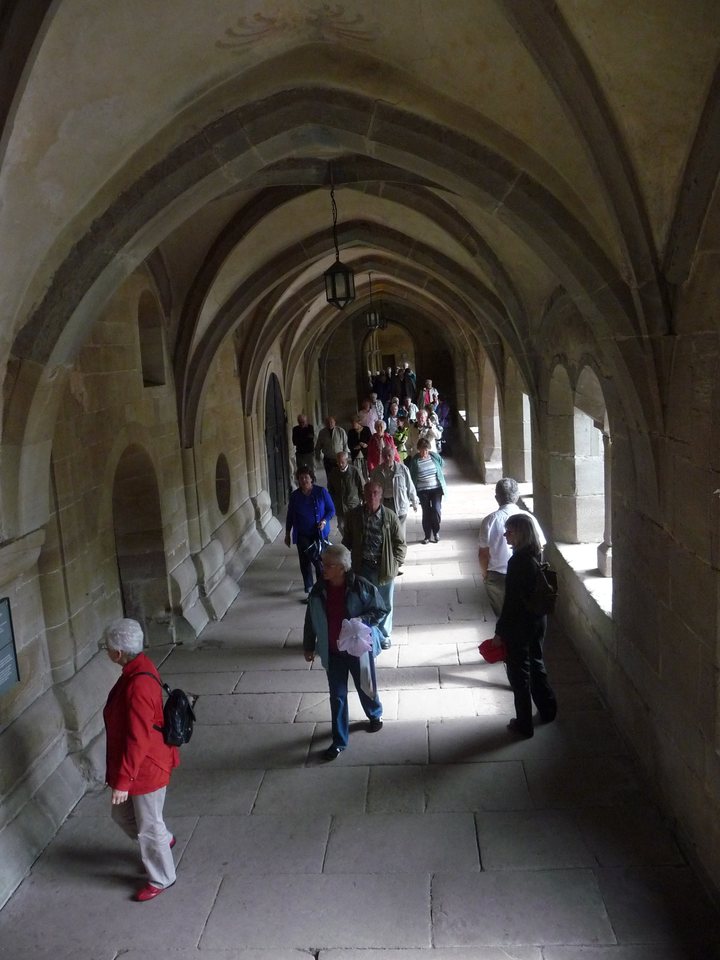 Während unseres genüsslichen Cafe-Aufenthaltes hatte sich der Himmel bewölkt, sodass wir auf dem kurzen Weg zum Kloster schließlich doch die Regenschirme brauchten. Bis zum Beginn der Klosterführung konnten sich die Seniorinnen und Senioren im Klosterhof umsehen. Viele waren schon lange nicht mehr hier gewesen und staunten über die schön renovierten Gebäude.