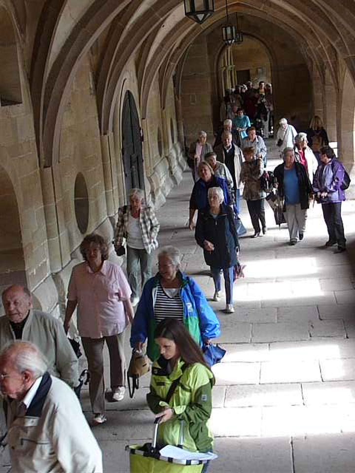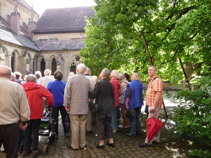 Anhand der Fenster erläutert die Führerin, wie der Bau des Kreuzganges in der Romanik begann und bis weit in die Gotik dauerte. Erstaunt vernahmen die Eislinger, dass die Fenster zum Innenhof des Kreuzganges einst bunt verglast waren. Diese bunten Gläser wurden nicht etwa zerstört, sondern entfernt. Sie sind bis heute verschollen.
