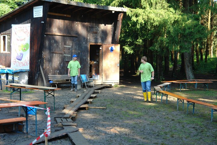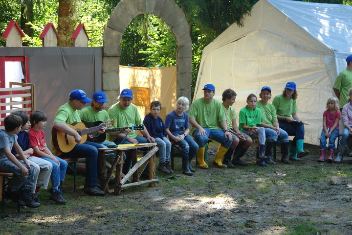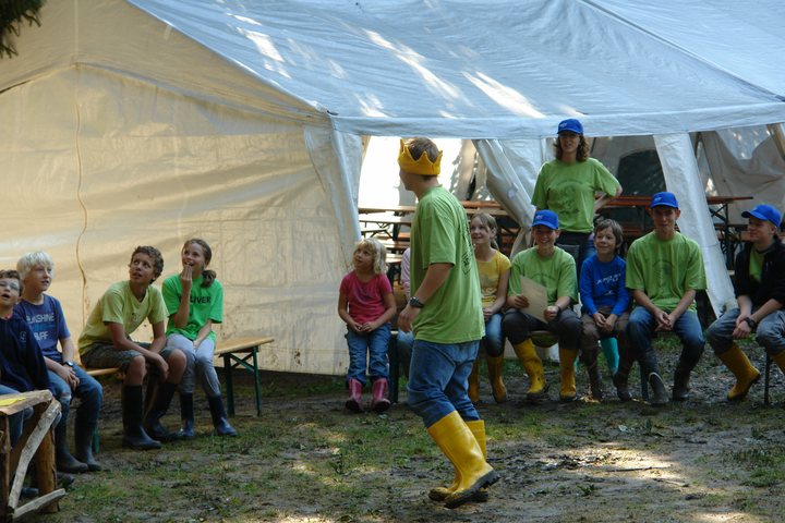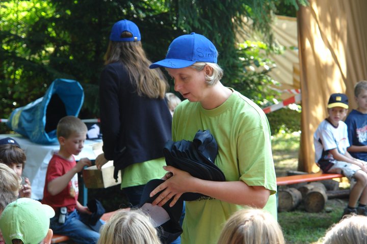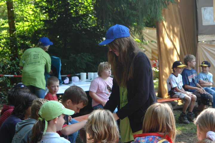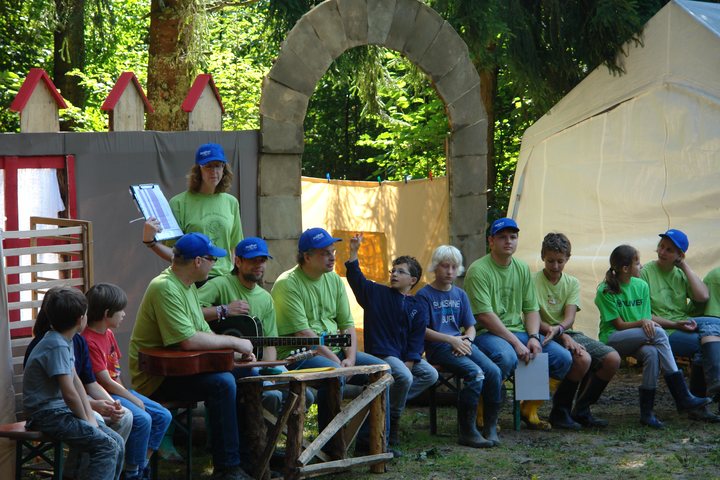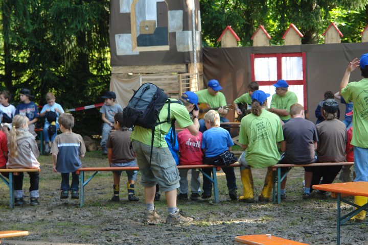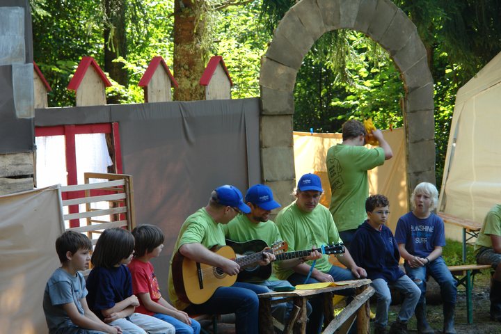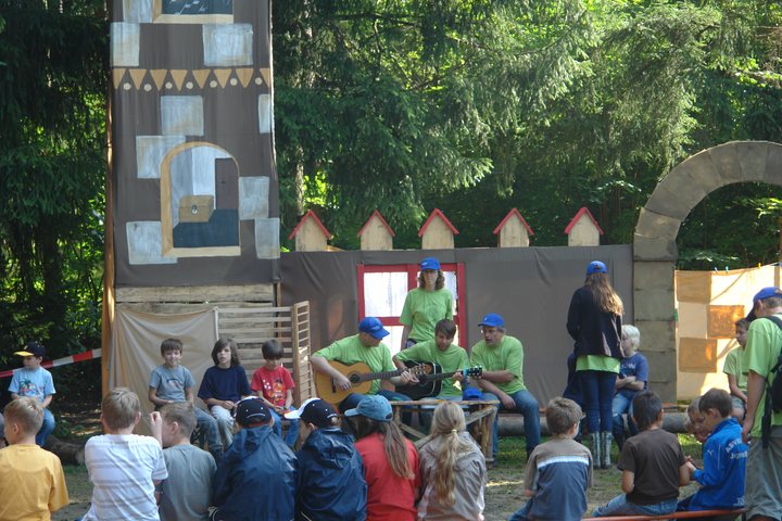 Wiederum 70 Kinder machten sich durch das Märchentor am Parkplatz bei Musikantenheim auf dem Weg in eine andere Welt. Auf dem Weg zum Pfadfinderplatz ging es für die aufmerksamen Besucher vorbei an vielen Märchenfiguren. So konnten die Kinder zum richtigen Zeitpunkt erleben, wie Schneewittchen gerade in den totbringenden Apfel biss, der Wolf Rotkäppchen verfolgte, Rumpelstilzchen das Geheimnis des Namens preis gab und vieles mehr. Am Märchenschloß auf dem Pfadfinderplatz angekommen warf Rapunzel ihr Haar vom Turm und dann konnte mit dem WaWuWo-Lied das Abenteuer Waldwunderwoche von Neuem starten. Waldwunderwoche zum zweiten hat begonnen |