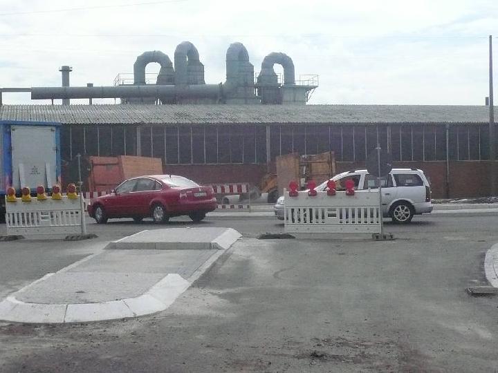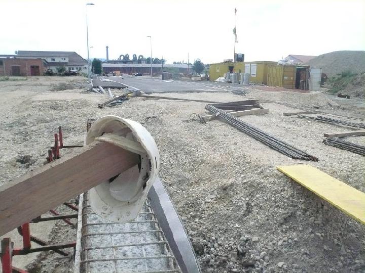 Die fünf großen vorgefertigen Betonplatten sind mit dem Riesenkran eingebracht worden und jetzt geht es an die Stahlbetonfeinarbeit - insgesamt 300 Tonnen Baustahl müssen insgesamt verarbeitet werden, ganz ohne Schwarzarbeiter, wie der Stahlspezialist uns bestätigte. Die Osttangente im Entstehen |