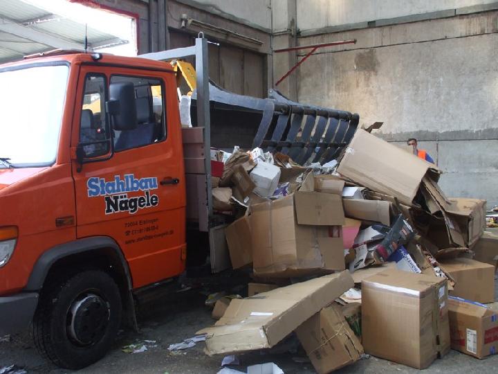 Deshalb begann nach der Mittagspause die Sammlung schon etwas träge. Die Fahrzeuge der Firmen Leonhard Weis, Stahlbau Nägele und Wendeler, Seibold, Marx, Pflum und Merk waren in den Eislinger Straßen ununterbrochen unterwegs. An dieser Stelle ein herzliches Dankeschön an die Firmen für die kostenlose zur Verfügungsstellung der Fahrzeuge und an das Team der Firma Fetzer für die jahrelange gute Zusammenarbeit. Gegen 18:30 Uhr wurde das letzte Fahrzeug auf dem Hof der Fa. Fetzer-Entsorgung abgeladen und somit stand das Endergebnis fest. Zusammenfassend sind die jährlichen immer wieder auftretenden Vorkommnisse zu nennen: -schlechte Papierqualität des Sammelgutes, da es Haushalte und Gewerbetreibende gibt, die der Meinung sind, Hausmüll und persönlichen Unrat auf den Schultern der Allgemeinheit und zu Lasten der Gesundheit und auch der Moral des ehrenamtlichen Sammelpersonales entsorgen zu müssen. Schlecht oder gar nicht gebündeltes Sammelgut, Kartonagen leer und nicht zusammengefaltet oder gefüllt mit Hausmüll und Küchenabfällen.