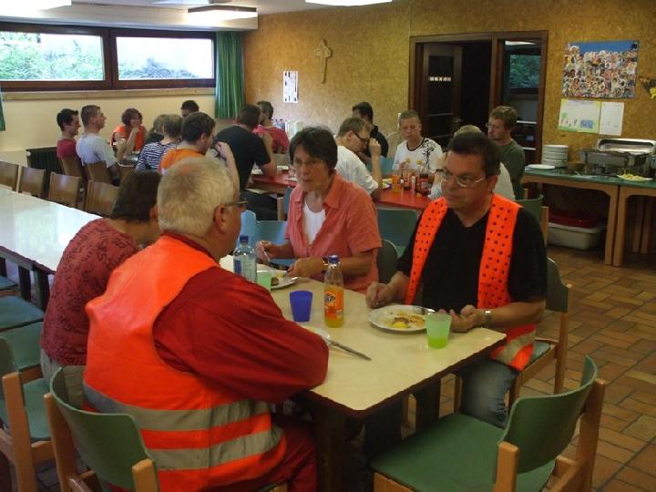 Gegen 8:00 Uhr trafen sich rund 20 Personen Frauen und Männer, verschiedener Alterklassen, an der St. Markuskirche in Eislingen. Angesagt war die Altpapiersammlung der Kath. Jungen Gemeinde St. Markus Eislingen. Michael Gruber, der seit Jahren immer auf neue die mühsame Vorarbeiten leistet, verteilte die fahrwilligen auf die vorhandenen Fahrzeuge. Die übrig gebliebenen wurden als Packer, Werfer und Lademeister eingeteilt. Gegen 8:15 Uhr starteten die Fahrzeuge in die entsprechenden Sammelgebiete in Eislingen, Krummwälden und Eschenbäche. Bei herrlichem Sommerwetter wurden den Tag über, unterbrochen durch eine ca. 1-Stündige Mittagspause rund 52,5 to Altpapier gesammelt. Zum Thema Mittagessen sollte bemerkt werden, dass „das lecker Essen“ (Schnitzel, Spätzle, Soße und Kartoffelsalat), bei Frau Eichert gekocht, durch Frau Schöbel und Elter organisiert und angerichtet, bestens gemundet hat. Für den Nachtisch (Pudding und frisches Obst) war fast kein Platz mehr in den gesättigten Helfern.