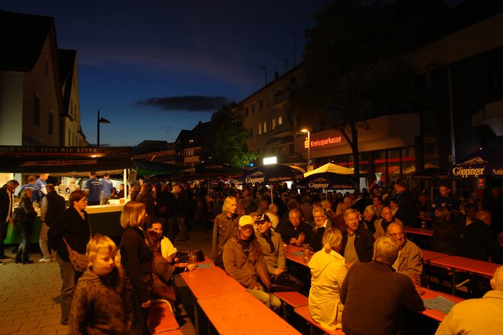 Der große Kreiselfesthock erwartete die Besucher auf der Salacher Straße. Und trotz herbstlich kühler Temperaturen kamen die Besucher zahlreich. Die über hundert Mitarbeiterinnen und Mitarbeiter des bewirtenden ASV waren immer gut beschäftigt.