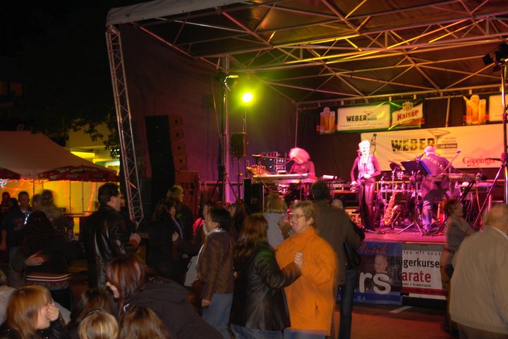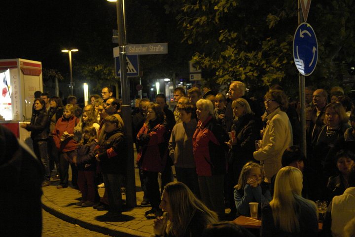 Bis in den späte Nacht sorgten die Blue Stars für Stimmung. Die Feuershow vor dem Freimann-Kreisel der Gruppe Fire Temptations aus Schwäbisch Gmünd rundete den unterhaltsamen Abend ab.