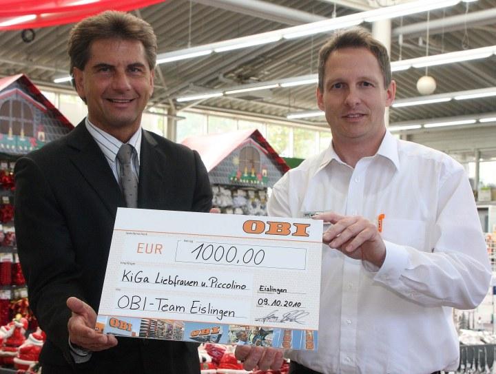 OBI Eislingen feiert 15jähriges Jubiläum und spendet Eislingen 1.000 Euro