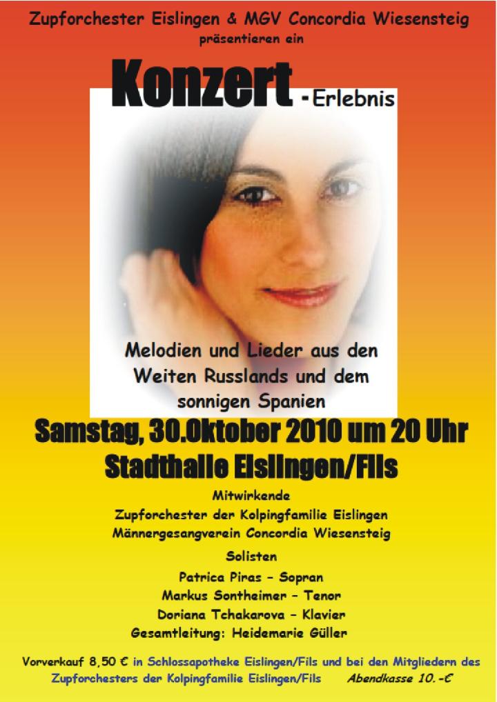 Melodien aus aller Welt bietet das Zupforchester der Kolpingsfamilie Eislingen zusammen mit dem Männergesangsverein Concordia Wiesensteig bei einem abwechslungsreichen Konzert am Samstag, 30.10.2010 in der Stadthalle Eislingen.