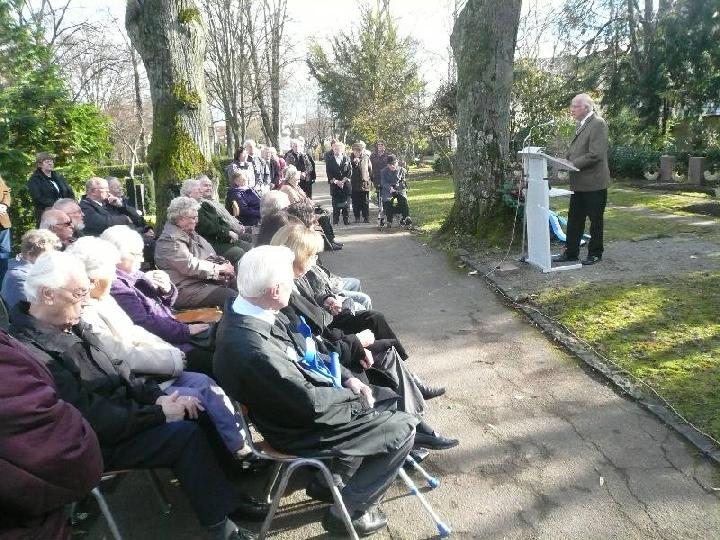 Rudi Münd vom VdK eröffnete bei frühlingshaftem Wetter am vergangenen Sonntagmorgen die neugestaltete Gedenkfeier zum Volkstrauertag am Ehrenmal auf dem Friedhof Nord. Er gedachte nicht nur der Toten der zwei Weltkriege, sondern aller Opfer von Krieg und Gewaltherrschaft weltweit.