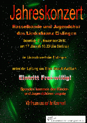 Die Rasselbande und der Jugendchor des Liederkranz Eislingen geben am Sonntag 21. November eine Zusammenfassung des letzten Jahres zum Besten. Bei Titeln wie „Somewhere over the rainbow“ oder „Die Gedanken sind frei“ gehen dem Zuhörer das Herz und die Ohren auf. Mit Ihrer Leiterin Ellen Strauß-Wallisch Rocken die Kids das Liederkranzheim und animieren das Publikum zum mitmachen. Songs wie „Die Hexe Wackelzahn“ und der „Urwaldsong“ machen gute Laune und stärken die Lachmuskeln. |