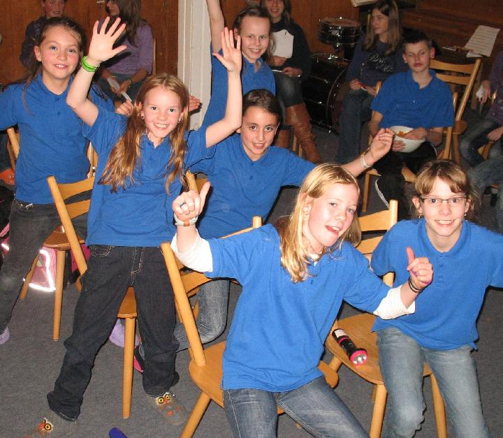 Nach dem Abendessen stand um 19.00 Uhr mit der Musicalprobe die letzte Übungsstunde des Tages auf dem Programm, welche von Carmen Stiefel geleitet wurde. Danach folgte – mit ein klein wenig Verspätung, wegen „technischer Probleme“ – der Bunte Abend mit dem Thema „Rund um die Musik“. Jedes Zimmer hatte sich hierzu seine eigenen Gedanken gemacht und mit viel Engagement und kreativen Ideen die Vorführung vorbereitet.