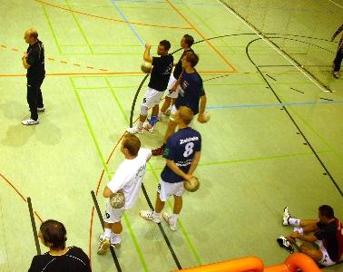 Trainer Götz Kümmerle und ein Teil seiner Spieler vor der Niederlage am letzten Wochenende in der Michelberghalle