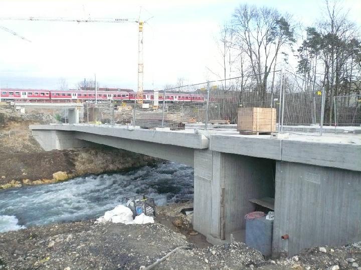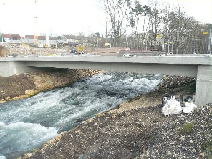 Wildwasserstrom Fils unter der neuen Osttangentenbrücke