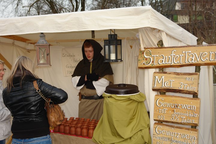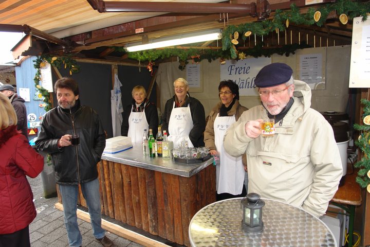 Daß der Eislinger Weihnachtsmarkt rund um den Kronenplatz ein Besuchermagnet ist, konnte man/frau am Sonntag wieder einmal mit erleben. Bei strahlendem trocken kaltem Winterwetter schmeckte der Glühwein, der Punsch und der Glühmost um so besser. |