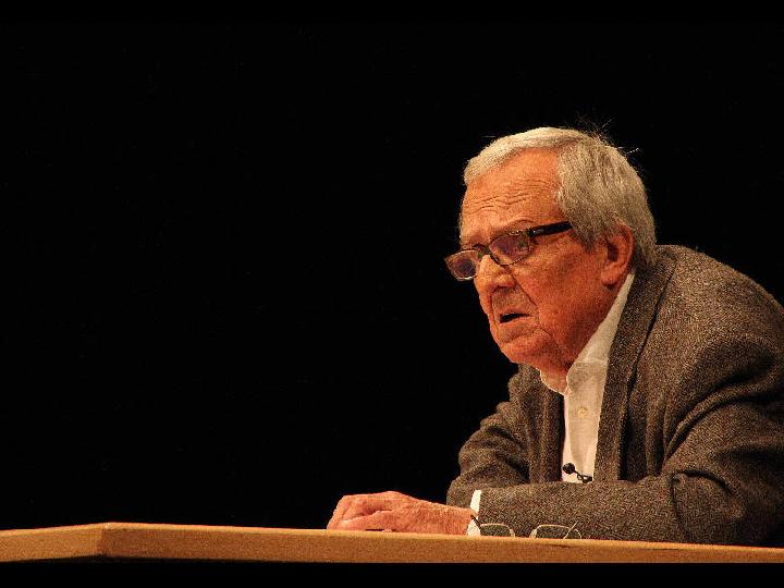 Nicht ohne Selbstironie und auch feine Spitzen gegen sein begeistertes Publikum verzauberte Dieter Hildebrandt mit sorgfältigst recherchierten Zeitungsartikel und sprachlicher Akrobat, unsägliches Journalistengeschwätz sezierend und Politikersprache zerpfückend.