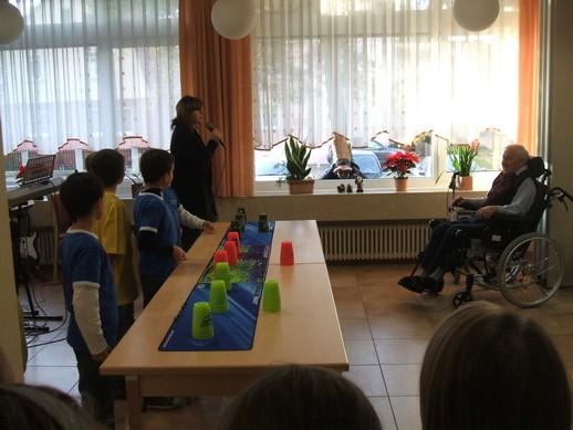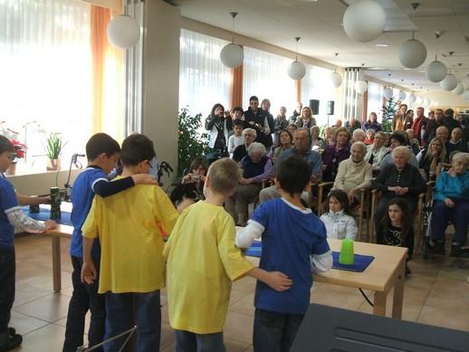 Beim Tag der offenen Tür im Altenzentrum St. Elisabeth war gelebte, gegenseitige Bildungsplanpartnerschaft sichtbar. Im Foyer wurden an die Besucher selbst gebastelte weihnachtliche Artikel verkauft, Grundschüler erfreuten die Bewohner und Besucher mit Gesängen und einer Speed-Stacking-Demonstration. |