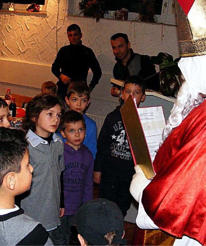 Der weihnachtliche Gast hatte natürlich auch für jedes Kind ein Präsent dabei, ließ es sich aber auch nicht nehmen zu jedem Einzelnen noch ein paar kritische, aber auch lobende Sätze zu sagen.