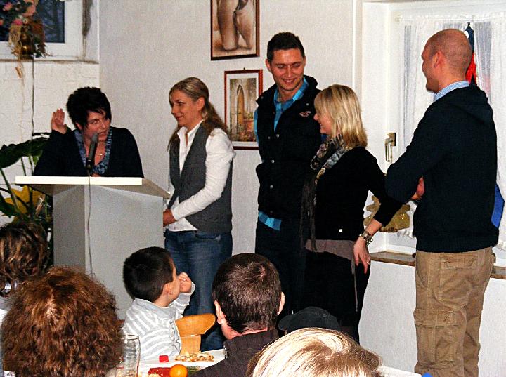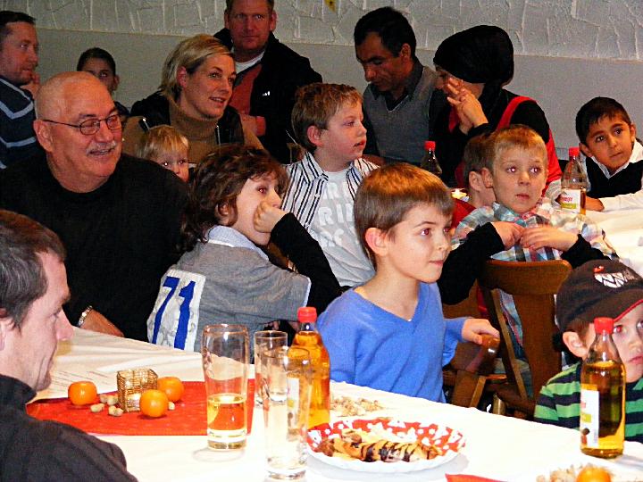 Mit einem Videorückblick wurde dann noch auf das vergangene halbe Jahr der Bambinis zurück geblickt, ehe das wie immer leckere Abendessen aus der Küche der Gaststätte Oberndorfer serviert wurde. Als der Hunger gestillt war, kam man zum letzten Highlight des Abends. Bei den Bambinis suchte man das Tor des Jahres 2010. Nachdem alle zu wählenden Treffer vorgestellt wurden, erfolgte die Stimmzettelvergabe. Intensiv wurden alle Zettel gezählt um am Ende einen Sieger festzustellen. Es siegte Fabian Pemöller, der erst seit ein paar Wochen im Kreise der FC Bambinis weilt. Gleich bei seinem ersten Turnierauftritt gelang ihm ein wunderschönes Solo, welches zum 'Tor des Jahres 2010' gekürt wurde. Überglücklich nahm er den Preis ( einen neuen Fussball ) entgegen, welchen er den gesamten Abend über nicht mehr aus den Händen ließ. Am Ende verließen alle Eltern und Kinder zufrieden das Clubhaus. Ein Dank gilt der Gaststätte Oberndorfer, als auch der Jugendleitung um Peter Heck, Rosy die dafür sorgte das der Nikolaus vorbei schaute und Präsident Rainer Interwies, der es sich nicht nehmen ließ bei der Jugendweihnachtsfeier vorbei zu schauen. Ein Lob auch an alle Eltern und Helfer, ohne die es nicht möglich gewesen wäre so eine tolle Weihnachtsfeier zu veranstalten.