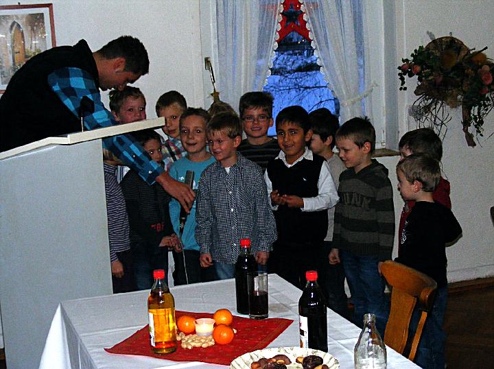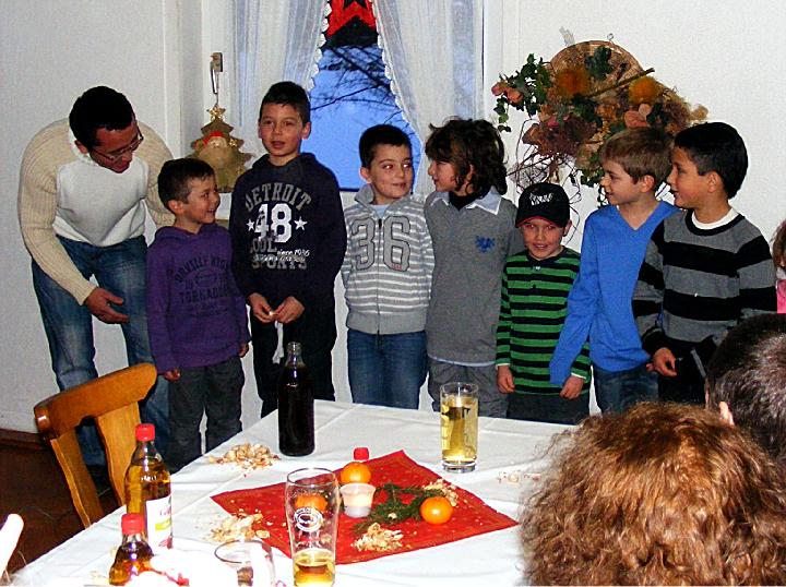 (fb) Am Samstagnachmittag trafen die Bambinis und die Knirpse zu ihrer gemeinsamen Weihnachtsfeier, im FC-Clubhaus ein. Die FC-Gaststätte Oberndorfer lieferte den perfekten Rahmen für ein frohes und lustiges Jahresabschlussfest der beiden FC-Juniorenteams. Nach einem Grußwort des Präsidenten Rainer Interwies, der der Einladung sichtlich gerne folgte, stimmten beide Mannschaften jeweils ein Weihnachtslied an. Es wurde herumgespielt und die leckeren Plätzchen der fleißigen Eltern fanden auch ihre Abnehmer. Doch als dann der Nikolaus Einzug ins Clubhaus hielt, waren alle Kinder zunächst ungewohnt still, doch danach mit einem 'Lasst uns froh und munter sein' herzlich begrüßt.