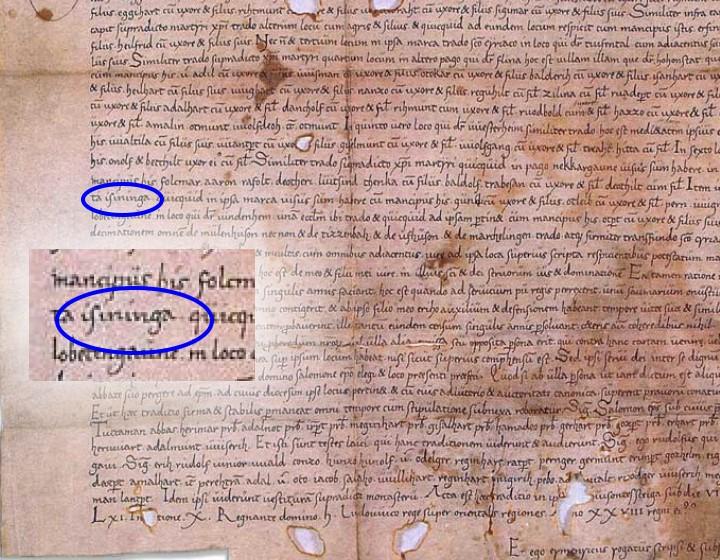 Insininga ist richtig. Foto der Stiftungsurkunde im Internet abrufbar