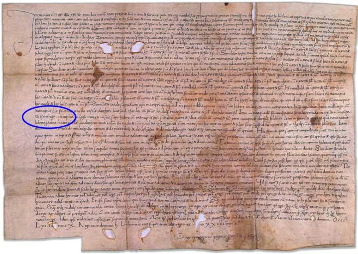 Wir konnten auf der Homepage von www.westerheim.de eine Fotographie der Stiftungsurkunde des Klosters Wiesensteig aufstöbern, die diese Aussage bestätigt. Allerdings mußten wir erfahren, daß die Urschrift aus dem Jahr 861 nicht mehr erhalten ist und nur noch Zwei Abschriften aus dem 16. Jhd. (auf Pergament) und aus dem 17. Jhd. (auf Papier) im Staatsarchiv in Stuttgart lagern.