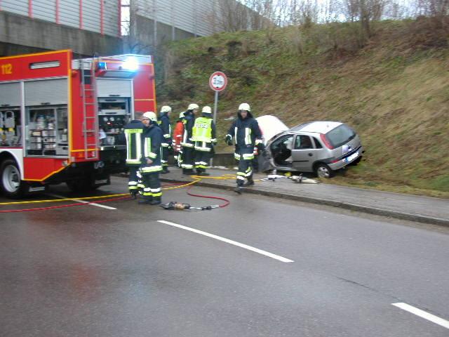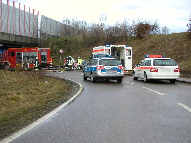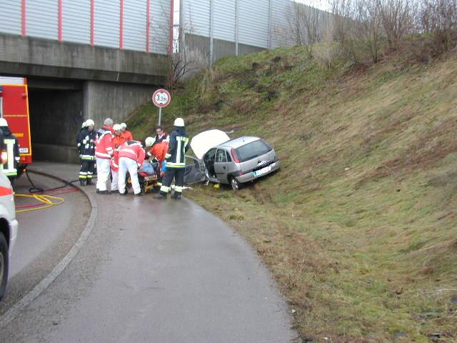 Am frühen Samstagmorgen musste die Eislinger Feuerwehr einen 85jährigen Pkw Lenker aus seinem Kleinwagen befreien. Der Fahrer kam nach rechts von der Fahrbahn ab und prallte an der Holzheimer Straße auf Höhe der Unterführung der B10 gegen eine Betonmauer. Bereits 6 Minuten nach der Alarmierung waren die Rettungskräfte von DRK, Polizei und Feuerwehr an der Unglückstelle.