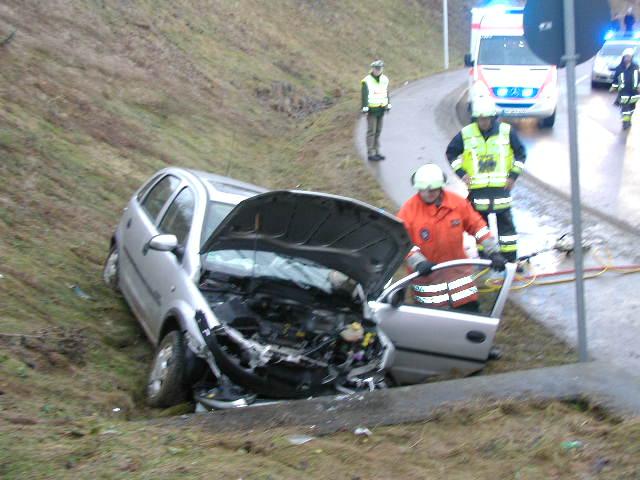 Zur Rettung der Person musste die Eislinger Feuerwehr die Rettungsschere und den Rettungsspreizer einsetzen, damit die Fahrertüre entfernt werden konnte. So wurde für den Notarzt ein Zugang zu dem Patienten geschaffen, damit der Patient schonend gerettet werden konnte. Bei dem Verkehrsunfall wurde der 85jährige Pkw Lenker verletzt und wurde von dem Rettungsdienst in die Klinik am Eichert verbracht.