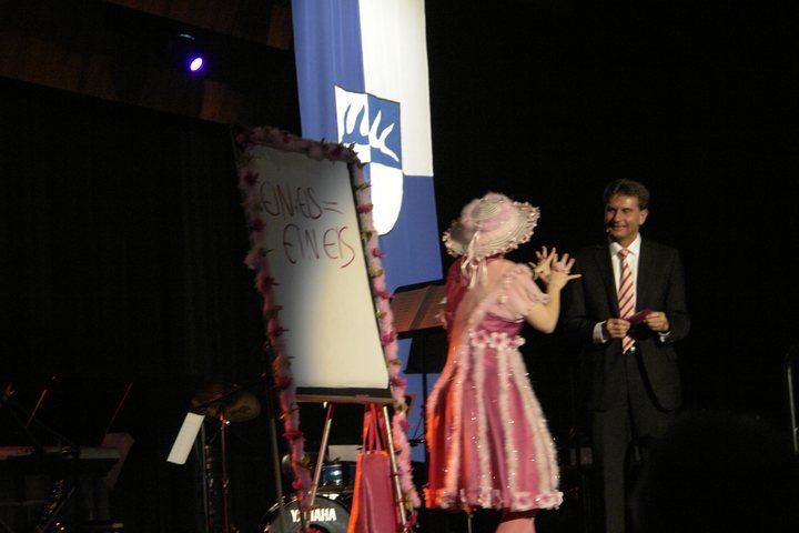 Abwechslungreich wie nie, ging der städtische Ehrungsfestakt für besonderes ehrenamtliches Engagement im kulturellen oder sozial-karitativen Bereich über die Bühne. Eingebettet war dieser in die Eröffnungsveranstaltung des Jubiläumsjahres zum elfhundetfünfzigsten Bestehen Eislingens. Die gebürtige Eislingerin Heike Sauer, bekannt als Marlis Blume, hat extra zum 1150ten Geburtstag ihr geliebtes Rosa zeitweise abgelegt und eröffnete die Veranstaltung, gewandet in Stadtfarben blau-weiss. Beim ihrem Lied My Eislingen frei nach Paul Anka wurde vielen der anwesenden Eislingerinnen und Eislinger ganz warm ums Herz. Die städtische Musikschule ergänzte mit musikalischen Stücken das Rahmenprogramm.