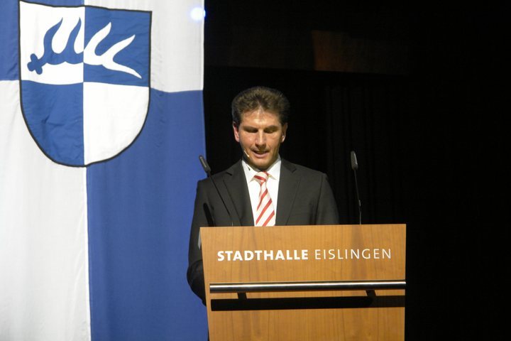 Bürgermeister Heininger verwies in seiner Eröffnungsrede auf die Geschichte Eislingens und wagte auch einen Ausblick in die Zukunft. Der geplante Rathausneubau und Schaffung eines Stadtzentrums sah er als dringliche Aufgabe an.
