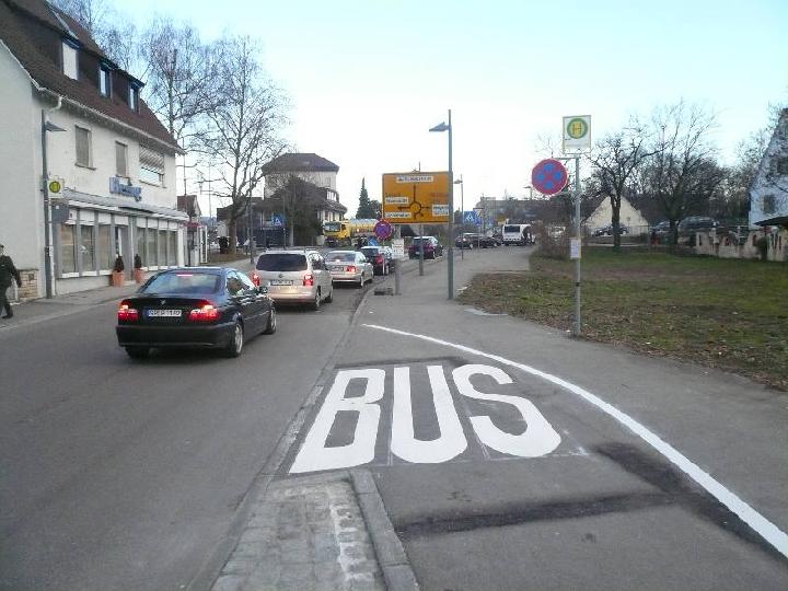 Trotz mehrere Schilder mit absolutem Halteverbot wurde gewohnheitsmäßig gegenüber Brillen-Blessing geparkt. Die Stadt hat schnell reagiert und ein deutliches BUS angebracht. Nicht zu übersehen: BUS |