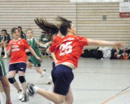 Melanie Kronmüller beim Torwurf, im Hintergrund Katrin Schweitzer