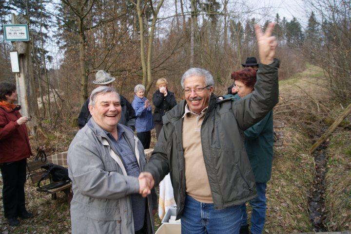 Sayed Mohammed, Eislinger mit ägyptischen Wurzeln, hat mit großer Freude die politischen Veränderungen in seinem Mutterland verfolgt. Zu den ersten Gratulaten zählten die Parteifreunde der Eislinger SPD. Sayed Mohammed, langjähriges Vorstandsmitglied der SPD in Eislingen, zeigte sich sehr erfreut über die gravierenden Veränderungen in Ägypten. Auf Nachfrage zeigte er sich zuversichtlich, daß die Ägypter in der großen Mehrheit eine demokratische Gesellschaft anstreben und extremistische Kräfte keine Chance hätten. Bruno Mörixbauer gratuliert Sayed Mohammed |